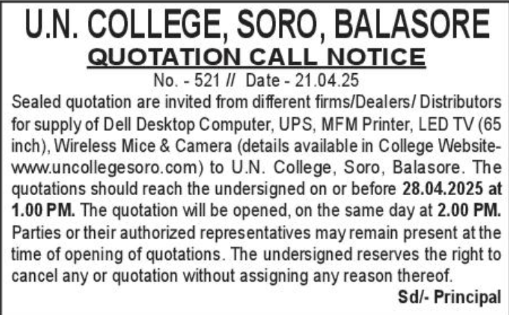 TenderQuotation Call Notice for Supplying Laboratory Equipment |